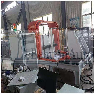牽引掛鉤疲勞試驗機 汽車牽引件斷裂拉伸 牽引掛鉤疲勞試驗機 汽車牽引件斷裂拉伸主要用途 牽引掛鉤疲勞試驗機主要用于對不同規(guī)格的汽車牽引工件進行不同角度的疲勞性能試驗,斷裂拉伸試驗等。由液壓缸來實現(xiàn)對工件的加載試驗力,通過液壓缸的往復運動來實現(xiàn)對工件的疲勞性能試驗,汽車牽引工件一端固定在試驗機固定架上,其垂直位置可通過電機帶動絲杠調節(jié),另一端連接到頭油缸活塞桿上,其液壓缸水平位置可通過電機帶動絲杠調節(jié)。由計算機通過專門編程的控制軟件采集處理作動器推力,運動速度,試驗次數,試驗長度,試驗時間等參數,并繪制相應曲線,直觀明了,可存盤并可打印輸出等。 牽引掛鉤疲勞試驗機 汽車牽引件斷裂拉伸主要技術參數 1、試驗力 50kN; 2、油缸行程 200mm; 3、推桿運動速度 0.1-1m/min無級任意設定,并勻速運動; 4、水平加載角度大于±45°可調;精度±0.5° 5、垂直位移角度大于±35°可調;精度±0.5°